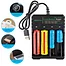 【18650 Battery Charger】Battery charger with Red/Green led light display, safe and fire prevention PC+ABS material Battery Charger, with heat-resisting, low temperature resistance and scratch resistance; 【4-Bay Battery Charger】The universal battery charger 4 charging slots can set the single-channel charging current up to 1.5A max. Automatically/manually select the optimum charge current, Supports 4-channel simultaneous independent charging without affecting. 【Multi-function Battery Charger】 The 4 bay can be adjustable for different battery length.This battery charger is suitable for 3.7V Li-io