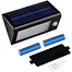Great outdoor security night light for wall, patio, garden, porch, lawn, pathway, stairway, driveway, etc. Built-in with 2x 2200mAh 18650 batteries. Up to 10 hours of continuous lighting under a full charge. Easy installation: simply mount on the wall with included screws. Auto on at dusk, off at sunrise.3 Intelligent Modes: 1. Steady On 2. Auto On when motion detected / Off when no motion 3. Auto On when motion detected / Dim when no motion. Gracetop solar powered wall sconces security lights step lights, 32 super-bright LED generating 400 lumens of light. Waterproof IP65 and heatproof.