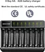 【FAST BATTERY CHARGING】Independent 8-slot charging channel. Controlled by MCU function, over-heat, and over-current protection short-circuit protection, non-rechargeable, and defective battery detection, 8 bay aaa aa nimh Battery Charger will help save energy and prolong battery life. and can fully charge 8pcs AA 2800mAh batteries within 4 hours.